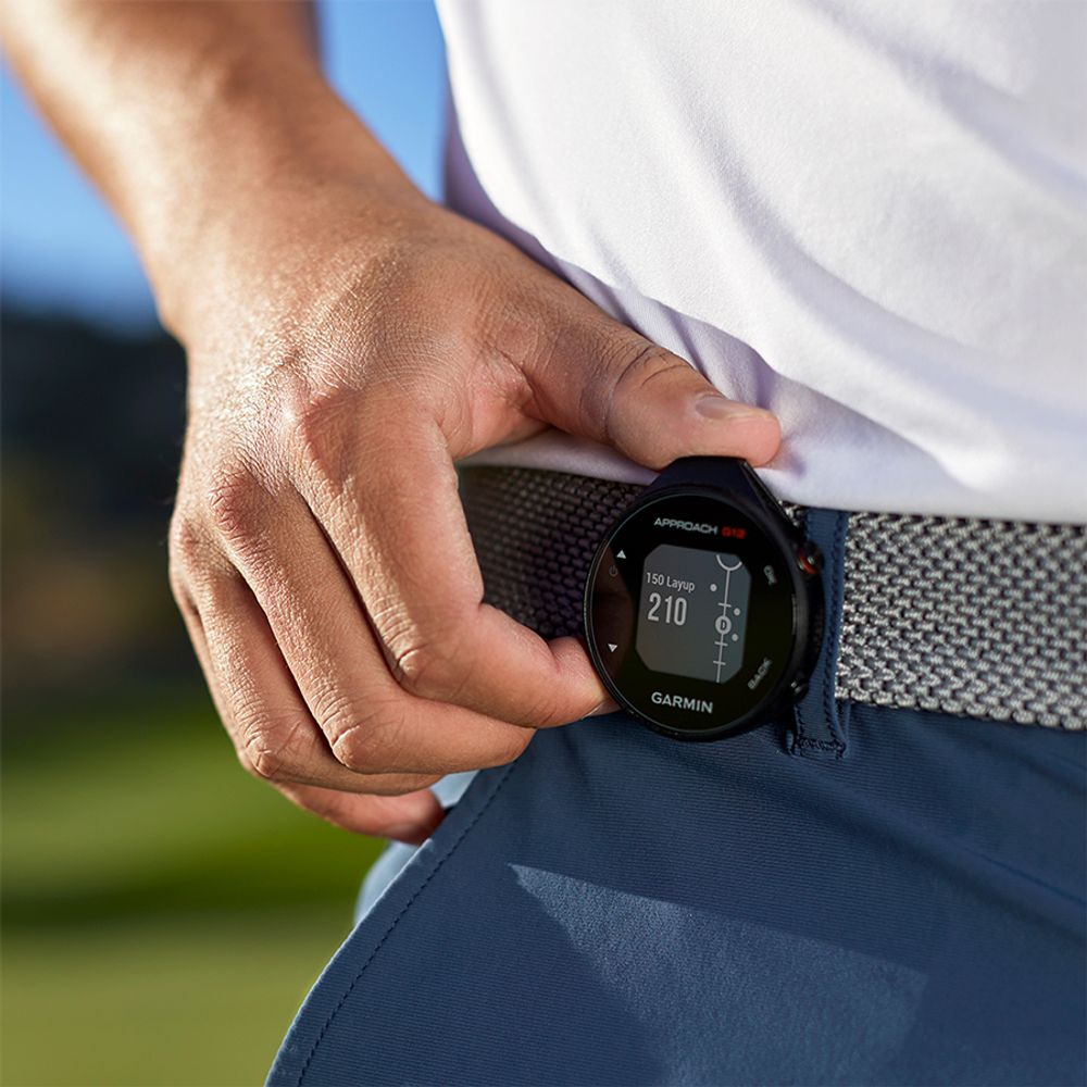 Approach G12 er en slank og fin GPS-enhed, som du kan fastgøre i lommen eller på bag’en og få alle informationer med et hurtigt klik. Den passer til dig som vil have alle afstandene og funktionerne, som et GPS-ur giver, men som ikke vil have at noget omkring armen skal forstyrre dine sving.