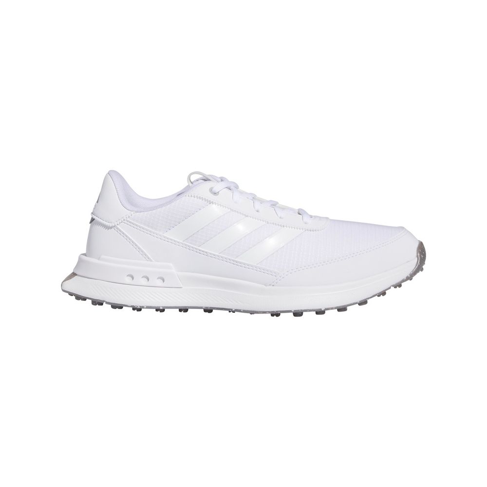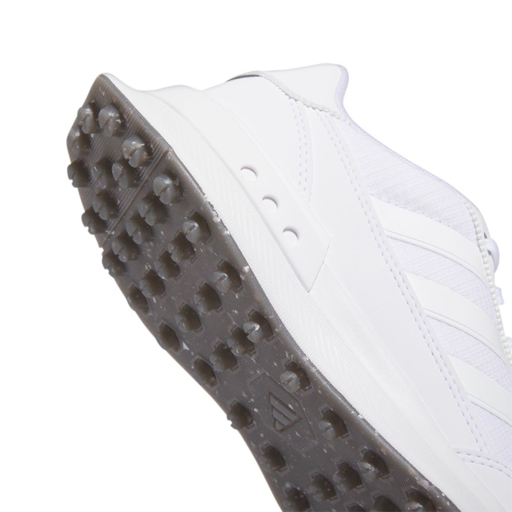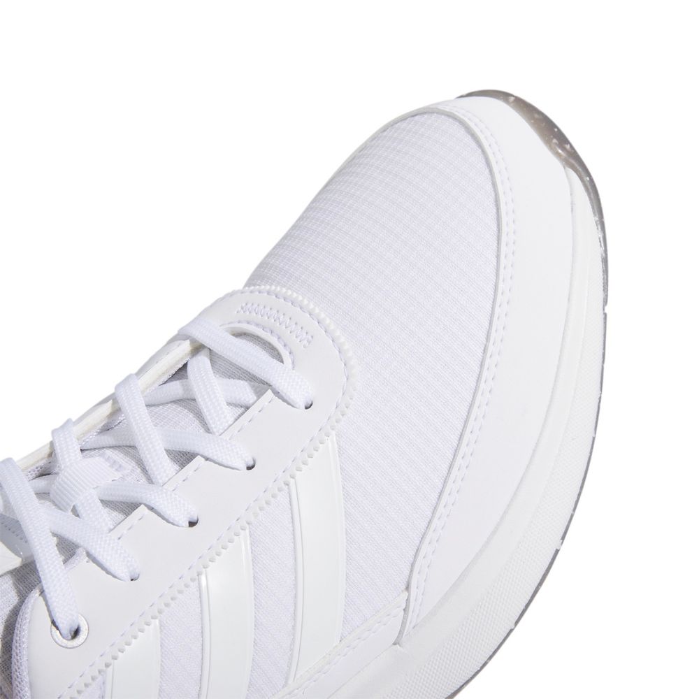 Med Adidas W S2G SL 24 får du en meget behagelig runde golf, så behagelig at du vil blive ved med at have dem på, når du forlader banen. Skoen giver stabilitet takket være den støttende hælkappe, og den pigfri Adiwear-ydersål hjælper dig med at svinge støt. Den vandtætte overdel holder fødderne tørre selv på fugtige greens. Let dæmpning fra hæl til tå holder dig komfortabel hele dagen lang.