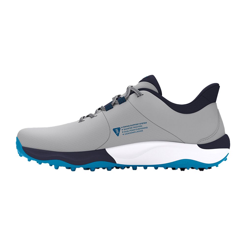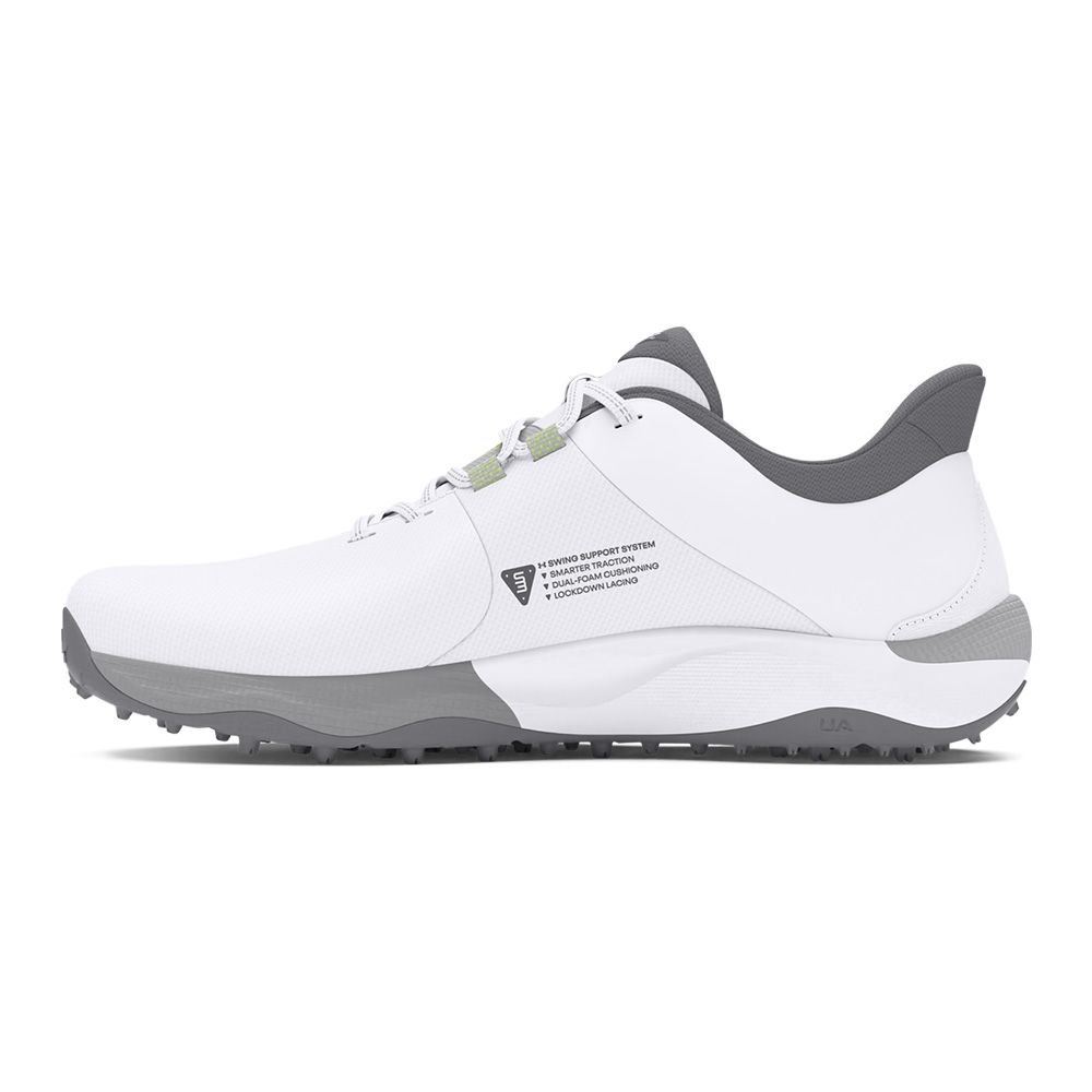 UA Swing Support System (S3) er kernen i disse sko, og det er tydeligt hvorfor. Denne avancerede teknologi tilbyder en række fordele, der er essentielle for din præstation. Med en Hybrid TPU + gummisål sikres fremragende greb, og dine fødder får den nødvendige stabilitet til at præstere optimalt, takket være strategisk placerede pigge i forskellige længder. Øverst på skoen findes Swing Support Strap, en særlig snøring kombineret med forstærkninger i overdelen, som sikrer biomekanisk korrekt støtte og stabilitet under din sving.