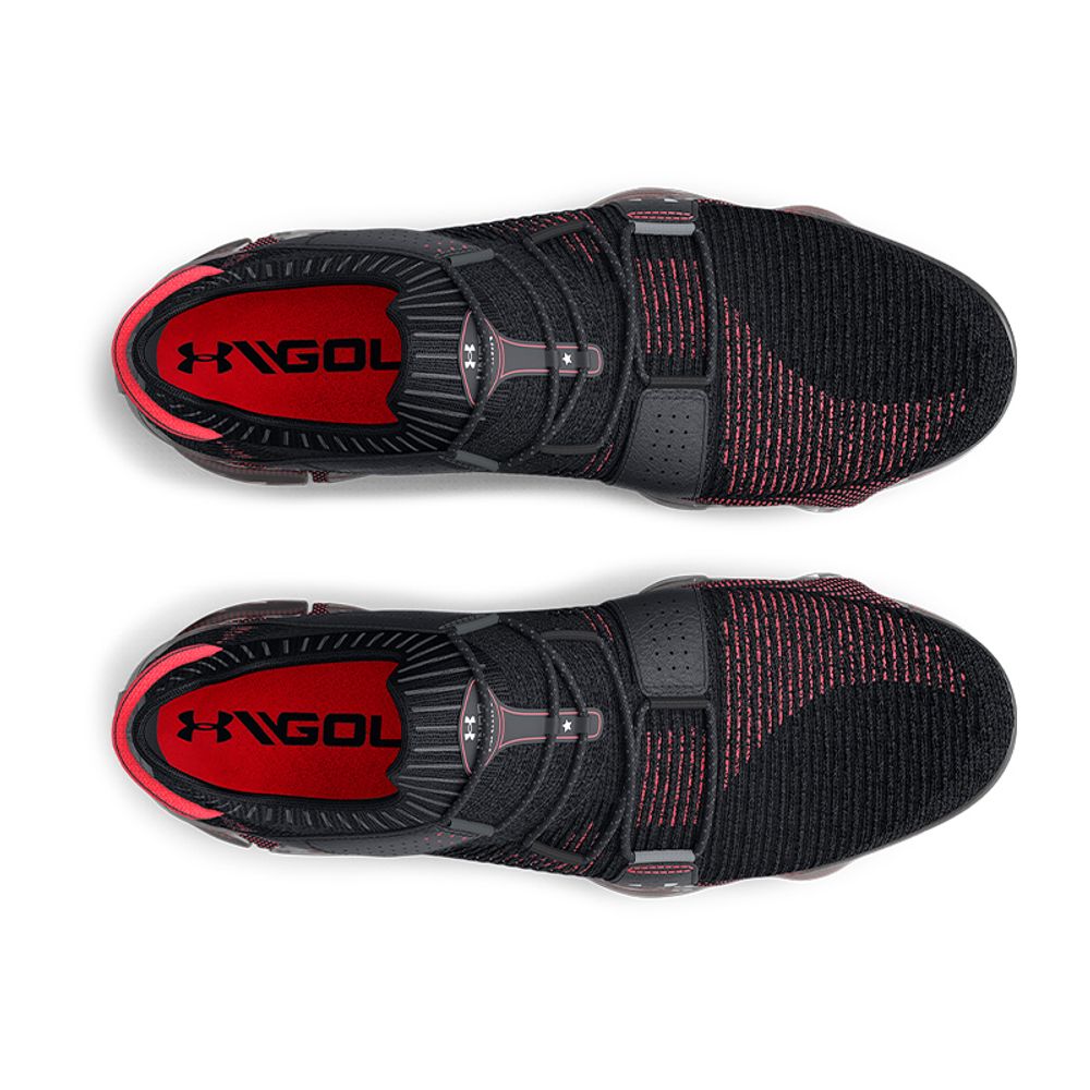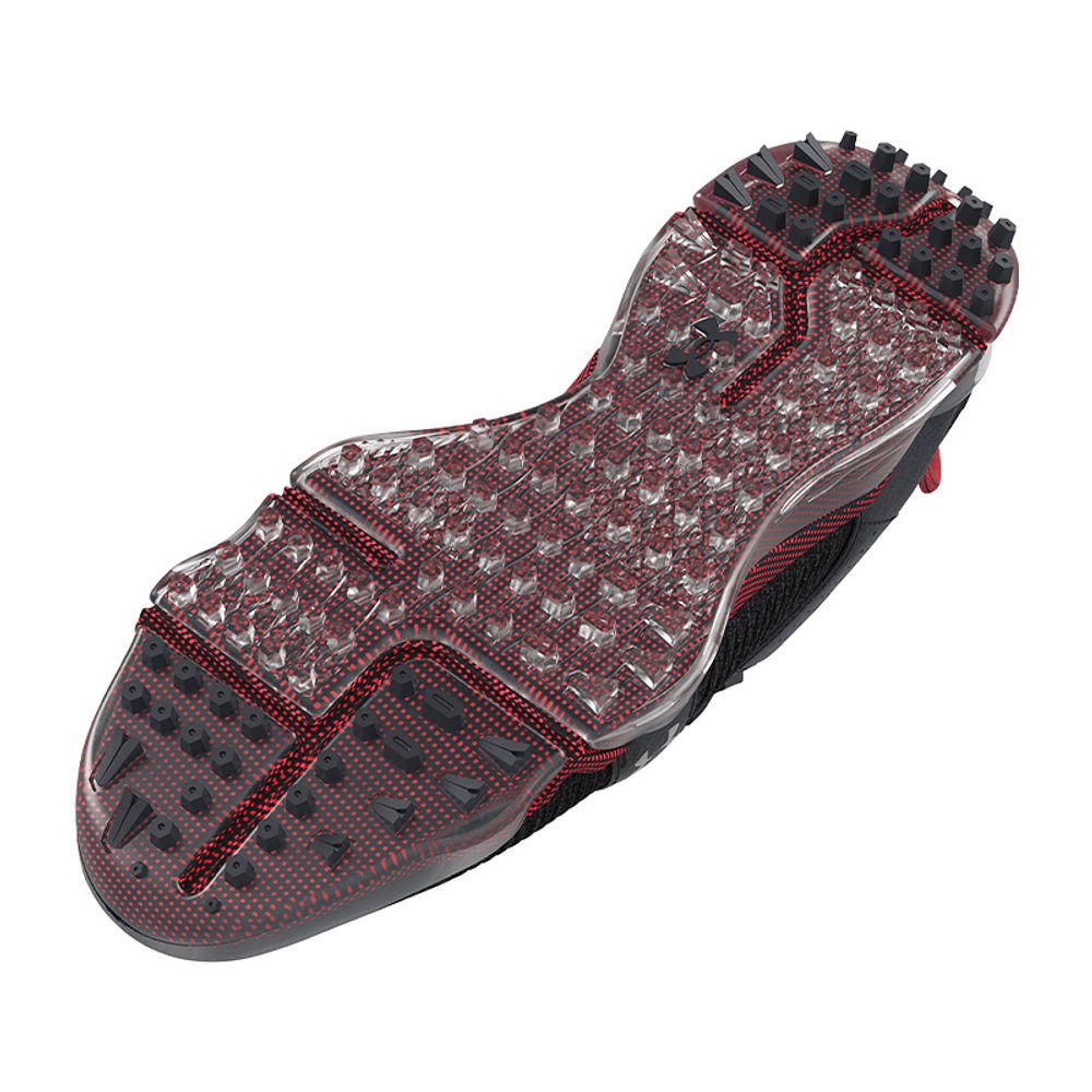 Under Armors dæmpningssystem hedder HOVR og giver energigengivende komfort ved hvert trin. Skoen har desuden god støtte og følger fodens naturlige bevægelser under svinget. Sålen arbejder med Under Armors patenterede Rotational Resistance Traction og Softspike Silver Tornado spikes, som genererer et fantastisk greb.