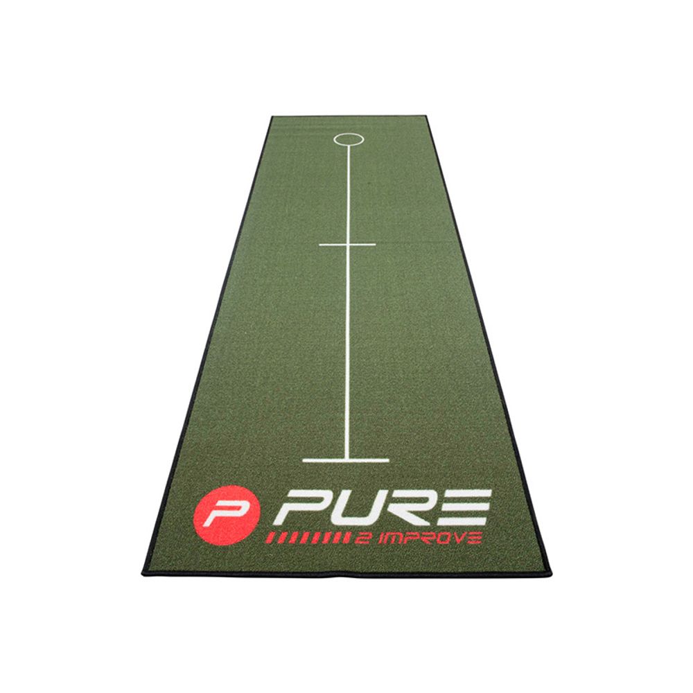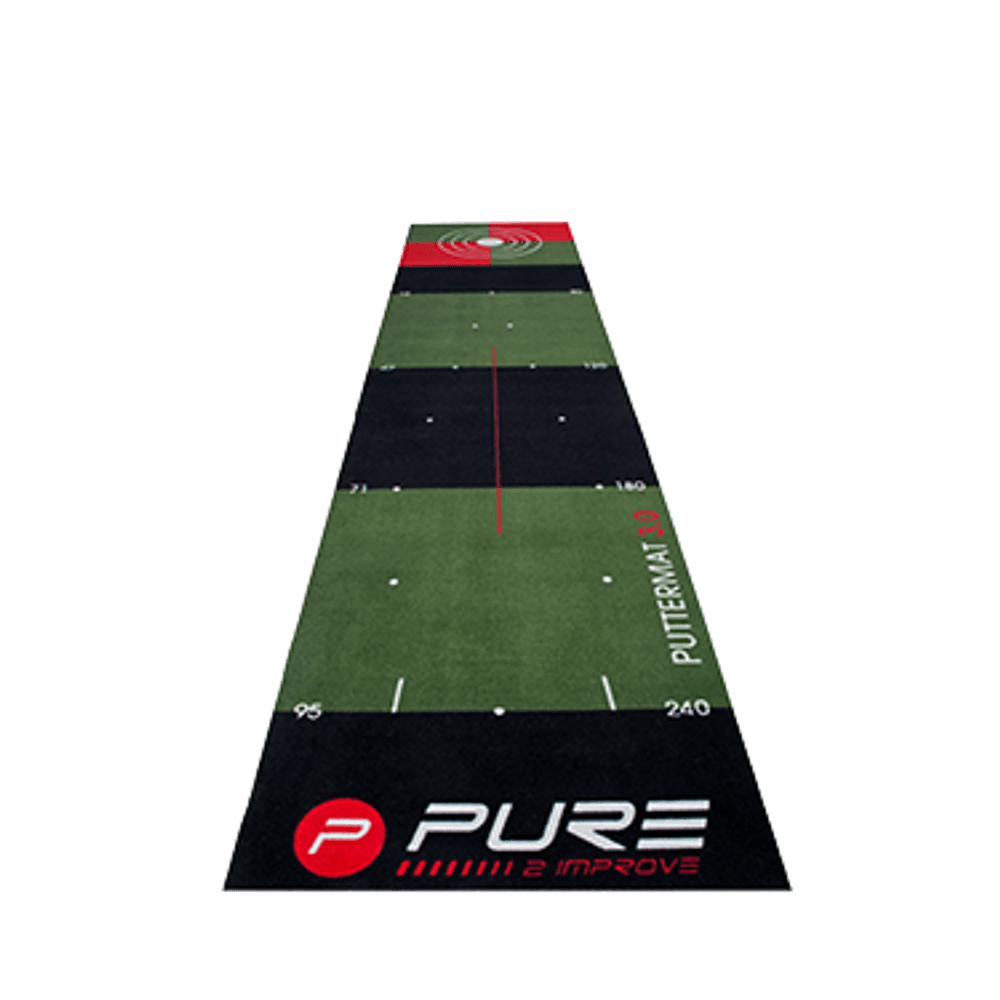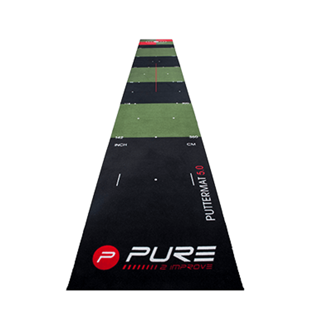 Pure2Improve Putting Matt Professional egner sig ideelt til hjemmetræningen. Den påtrykte grafik muliggør fem forskellige øvelser, som du kan bruge til at forbedre din teknik og træne mere konsistente put. Måtten måler en stimpmeter på 9 og simulerer en almindelig green.