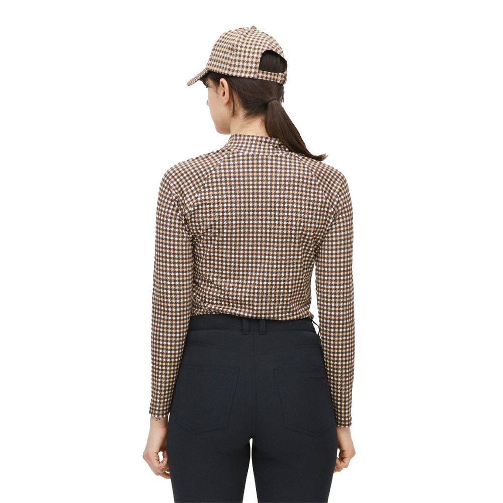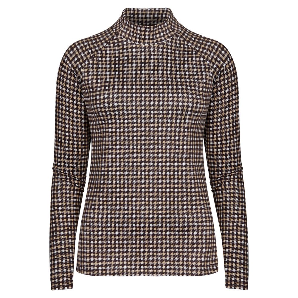 Elle er en langærmet poloshirt af genanvendt polyester og fleksibel elastan. Den har en fugttransporterende funktion, der holder din hud tør og en blød børstet inderside giver ekstra varme. Sweateren har en behagelig polokrave og en normal pasform. Stilfuldt brunt mini ternet mønster over hele tøjet.